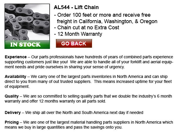 TOLL FREE: 1-888-633-0283 www.forkliftchain.ca Email Us Lift Parts Express prides itself on the diversity and volume of parts we carry. Regardless of the model of lift truck you run, we have the parts you need. The cost savings we can offer will... About Us | ||