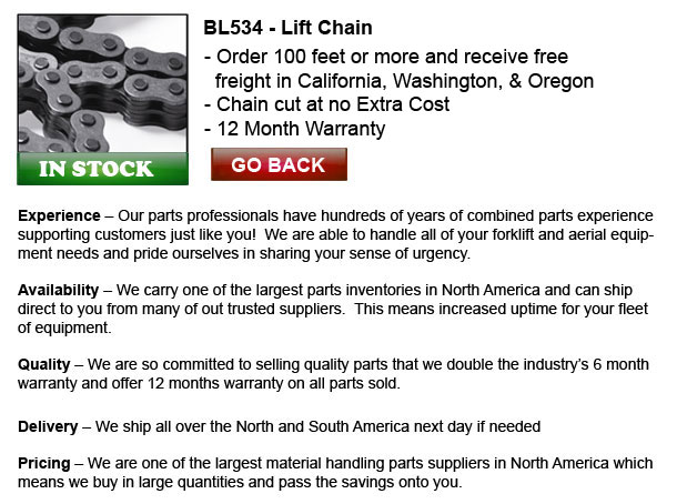 TOLL FREE: 1-888-633-0283 www.forkliftchain.ca Email Us Lift Parts Express prides itself on the diversity and volume of parts we carry. Regardless of the model of lift truck you run, we have the parts you need. The cost savings we can offer will... About Us | ||