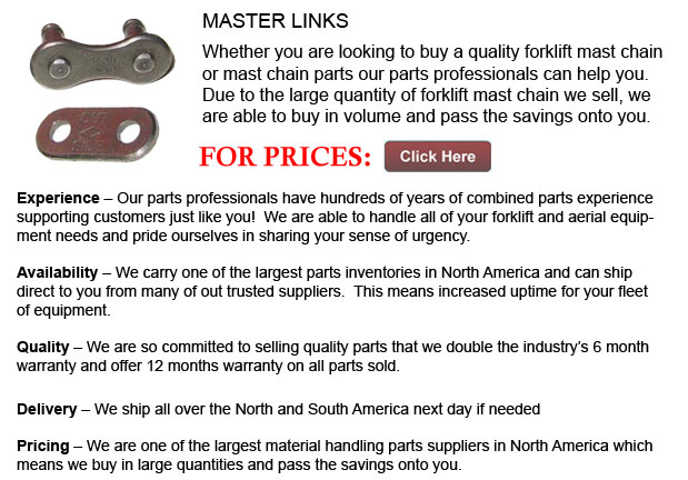 TOLL FREE: 1-888-633-0283 www.forkliftchain.ca Email Us Lift Parts Express prides itself on the diversity and volume of parts we carry. Regardless of the model of lift truck you run, we have the parts you need. The cost savings we can offer will... About Us | ||